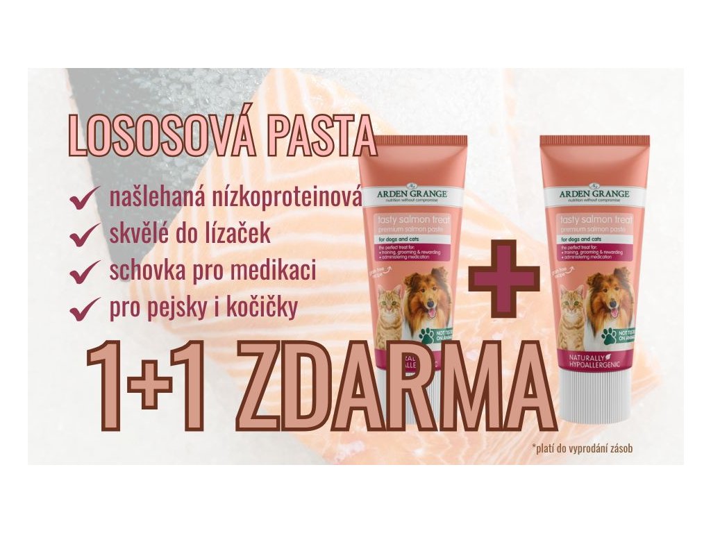 Lososová pasta je bezobilná svačinka pro domácí mazlíčky, která neobsahuje žádná umělá barviva, příchutě ani konzervační látky. Pasta je perfektní pamlsek pro kočičky i pejsky. S chutnou recepturou můžete pastu používat při tréninku nebo ji dokonce použít k podávání léků, buď smíchaných s rozdrcenou tabletou nebo s tekutými léky na talíři. Je to tak chutné a snadné, aby to fungovalo. Kulinářský požitek pro všechny čtyřnohé kamarády. Vynikající pro lízací podložky a jiné domácí hlavolamy.