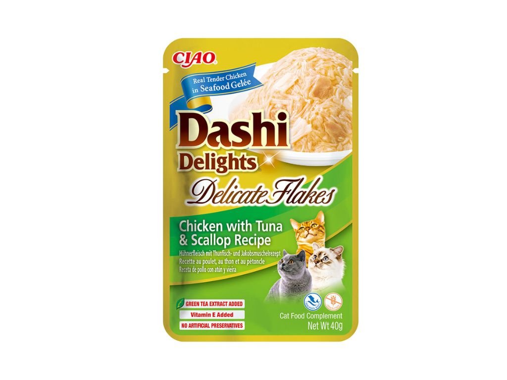 Churu Cat Dashi DELI FLAKES Delights KUŘE, TUŇÁK A HŘEBENATKA 40 g