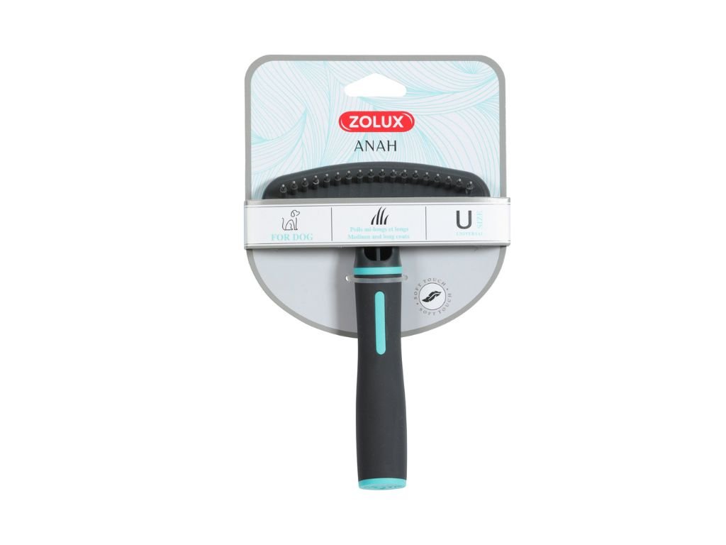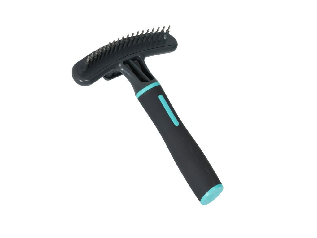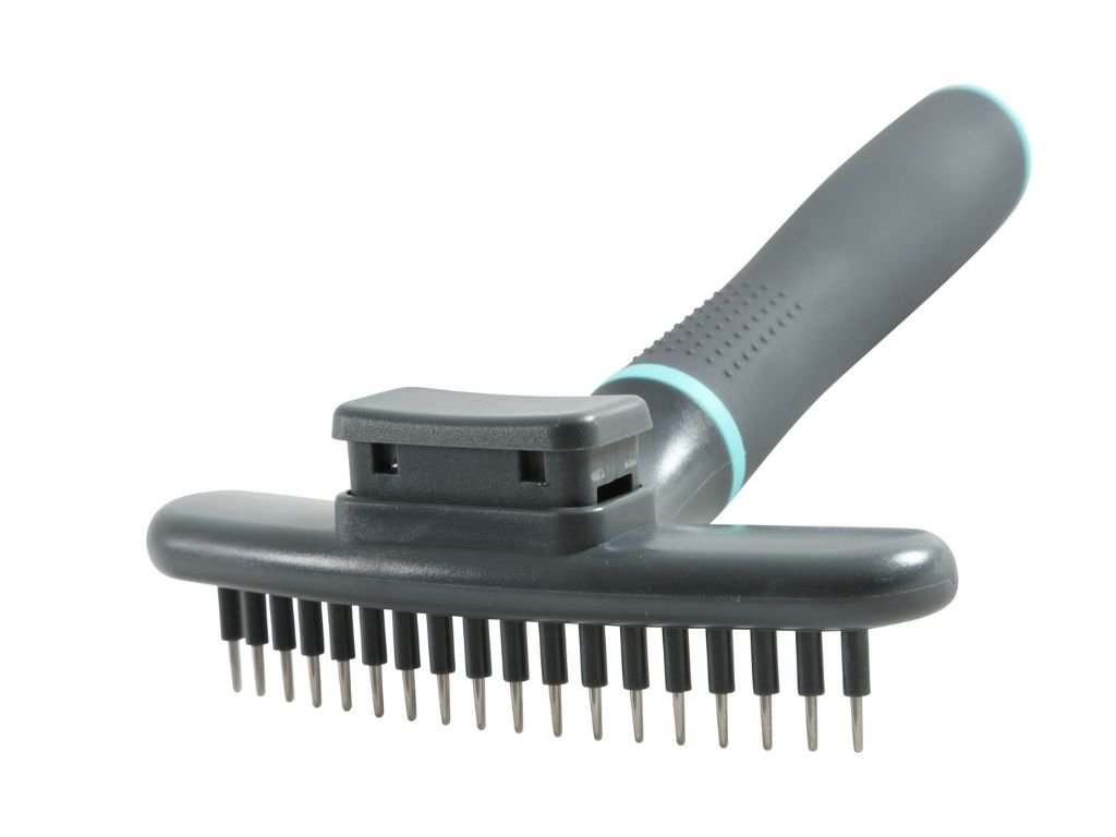 Výsuvné hrablo s 18 zuby pro psy na středně dlouhou a dlouhou srst. Odstraňuje vypadané chlupy a rozplétá srst.