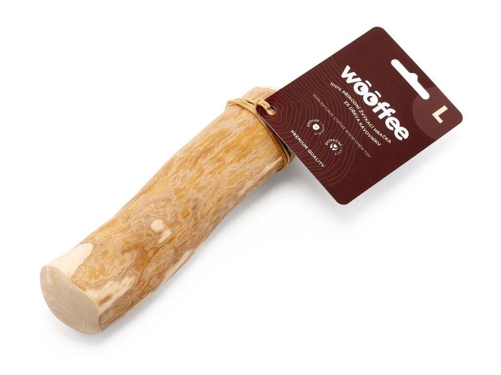 Přírodní žvýkací hračky Wooffee jsou vyrobeny z kávovníků, které jsou staré minimálně 20 let a již přestaly plodit. Díky stáří stromů se vyznačují vysokou odolností a trvanlivostí. Kávové dřevo svou tvrdostí zcela vyhovuje potřebám psů. Má jemně nasládlou chuť a příjemnou vůni, která psy láká. Při žvýkání se z dřeva uvolňují vlákna, která jsou měkká, bez ostrých hran a zcela bezpečná pro trávicí systém.