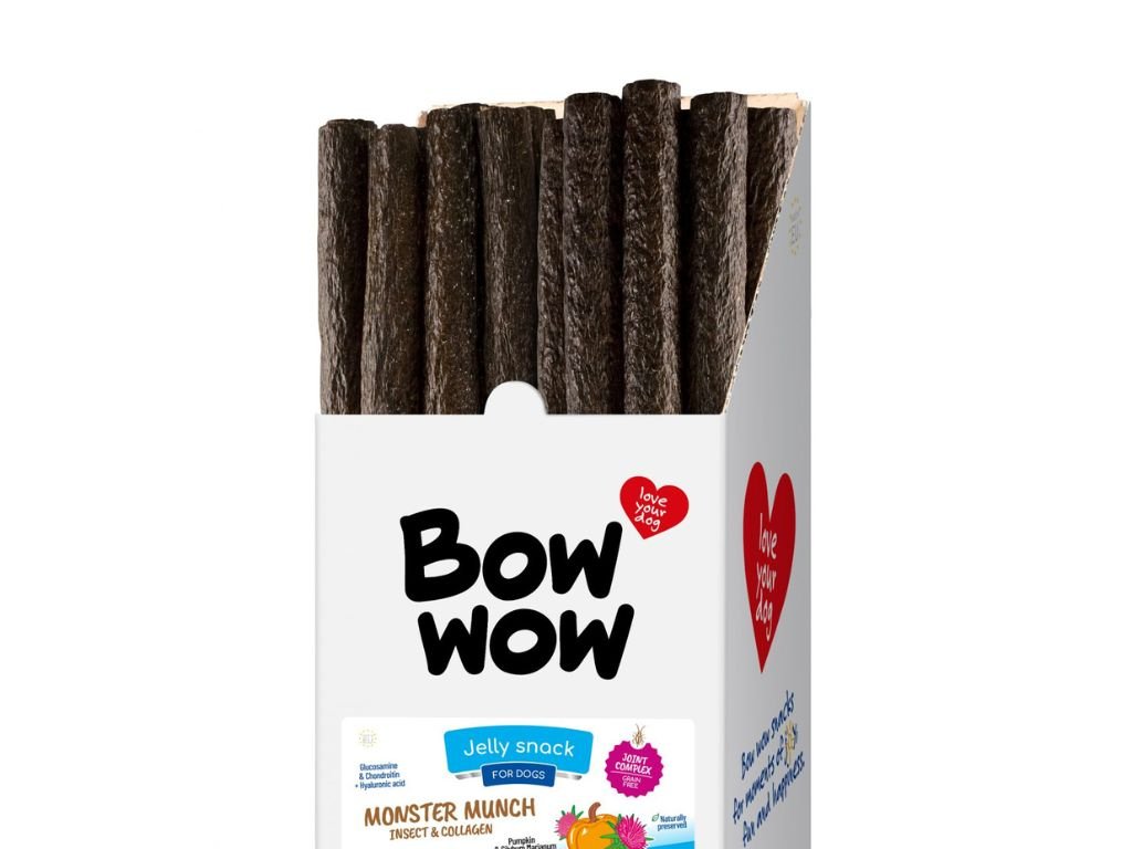 hovězí klihovka, hovězí kolagen 32%, hovězí, vepřové, hmyzí protein 2%, drůbeží, dýně, glukosamin (80 mg/kg), šípek (80 mg/kg), chondroitin (20 mg/kg), kyselina hyaluronová (20 mg/kg).