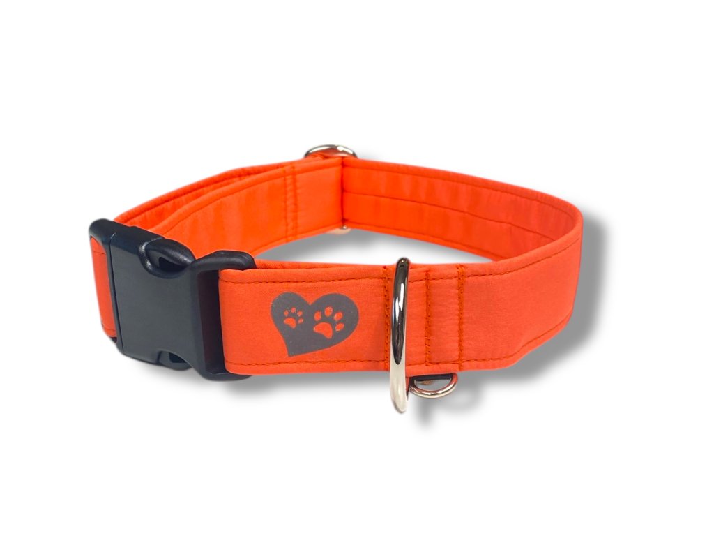 Díky podšití speciální látkou si zachovají prodyšnost a nedochází k zapařování kůže pod obojkem, jako je to při oboustranném softshellu. Obojek je dále doplněn stříbrné s plastové komponenty, reflexními prvky a praktickým očkem, které slouží k uchycení psí známky. Toto očko jsme záměrně posunuli dále od spony, aby nedocházelo k cinkání známky o spony.