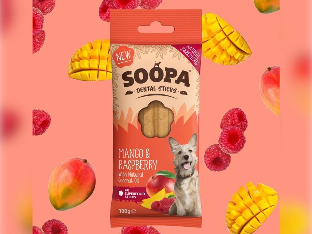 Dentální tyčinky s malinami, mangem a kokosovým olejem jsou veganské pochoutky, jejichž žvýkání pomáhá čistit zuby a přispívá tak k celkovému zdraví ústní dutiny. Jejich konzistence umožňuje intenzivní ale bezpečné žvýkání – jsou dostatečně pevné pro účinné mechanické čištění zubů, ale zároveň dostatečně měkké, aby nedocházelo k podráždění nebo poranění dásní. Soopa jsou 100% přírodní, bez obilovin, umělých barviv a dochucovadel. Díky nízkému obsahu tuku a proteinu jsou vhodné i pro psy s citlivým zažíváním, alergií na živočišné bílkoviny nebo nízkoproteinovou dietou.
