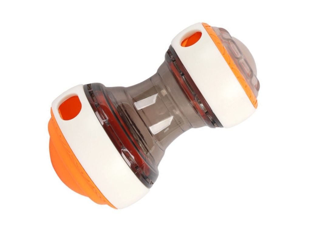 Tato interaktivní činka je skvělá hračka pro psy, kteří se rádi baví hlavolamy a zároveň milují pamlsky. Princip je jednoduchý – pes musí činku kutálet, tahat nebo šťouchat, aby z ní vypadly dobroty. Tím se zabaví a zároveň přirozeně zahání nudu. Hračka má dva nastavitelné otvory, díky kterým můžete zvolit obtížnost hry – snadno tak přizpůsobíte hračku začátečníkovi i zkušenému „psímu luštiteli“. Činka se hodí nejen na samostatnou hru, ale i na interakci s páníčkem.