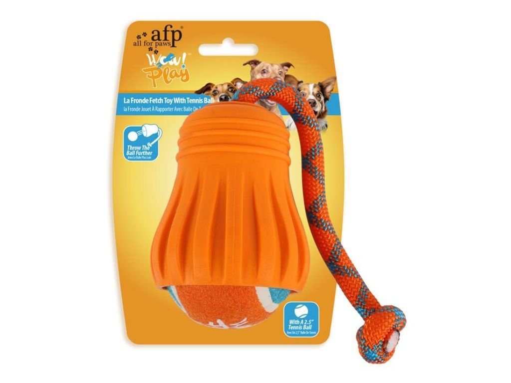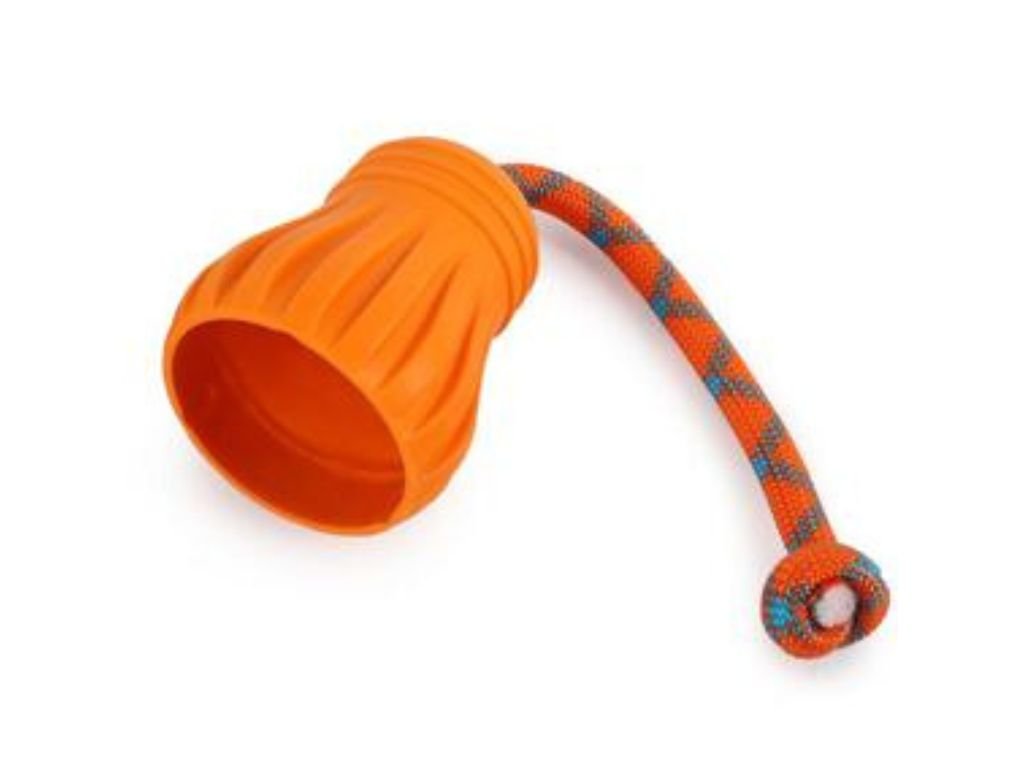 Tato multifunkční hračka spojuje vrhač míčků a přetahovadlo v jednom a je ideální volbou pro aktivní a hravé psy, kteří si užívají aportování a přetahování. Jak si hrát? Vložte míček do oranžového zvonu, uchopte hračku za provaz a švihněte – míček doletí mnohem dál a výš, a to váš pes rozhodně ocení! A když vás nebo vašeho čtyřnohého parťáka aportování unaví, můžete se o hračku přetahovat a posílit tak nejen svaly a čelisti vašeho psa ale i vzájemné pouto mezi vámi a vaším mazlíčkem.
